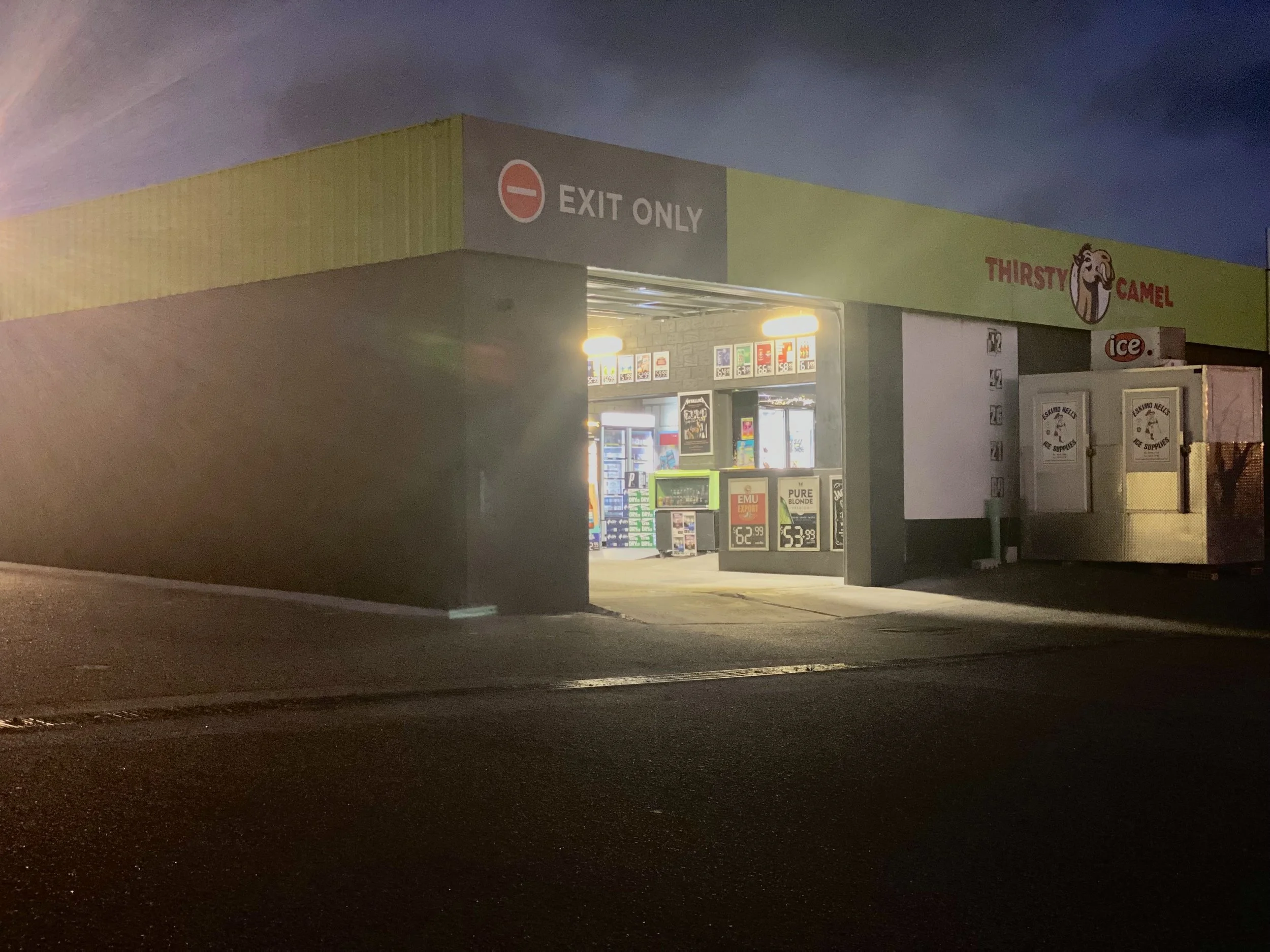 Extension and enclosure of existing Thirsty Camel Bottleshop. Including shop fitout and new rollerdoors